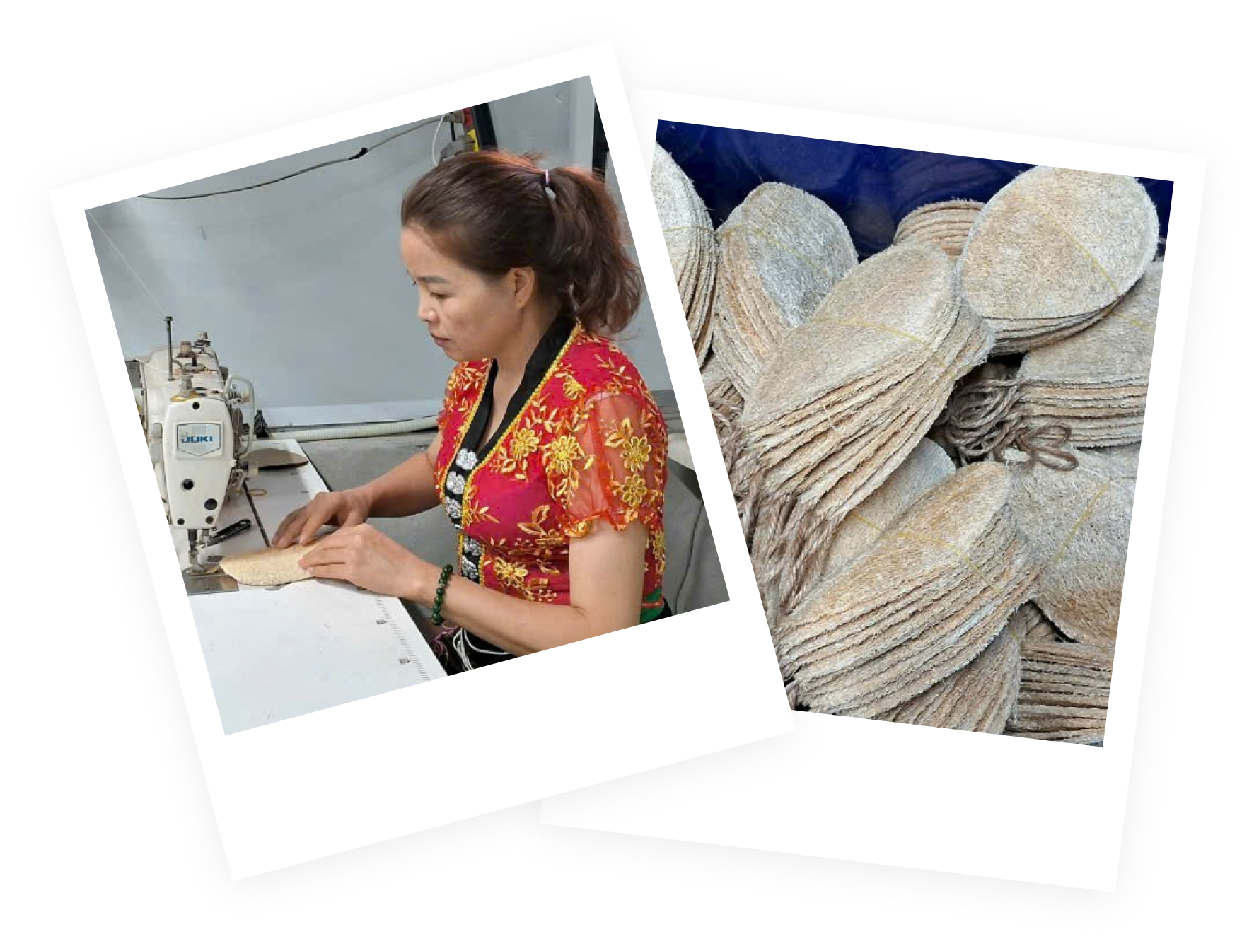 Từ miếng tắm chà lưng, bông rửa bát đến vật dụng trang trí – mọi thứ đều được làm thủ công từ xơ mướp Việt, vì một lối sống xanh và bền vững.